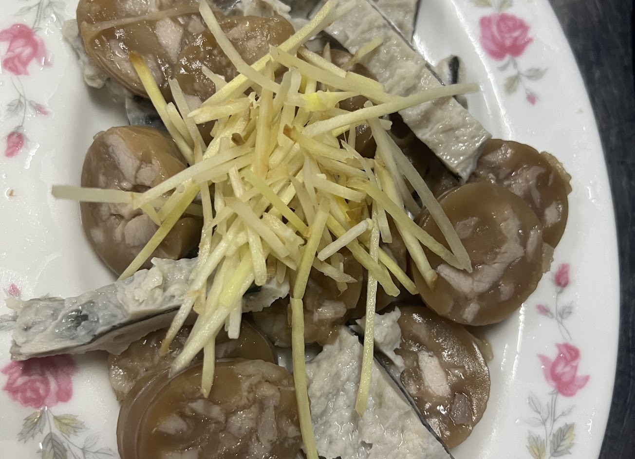小菜都不錯吃,粉腸豬皮都不錯,粉紅醬汁配上醋薑醬還不錯吃