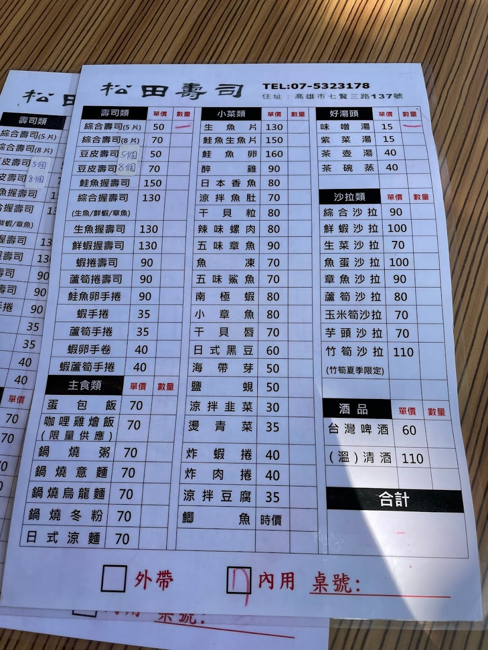 2024最新在地推薦餐廳的菜單_松田壽司的菜單、圖片