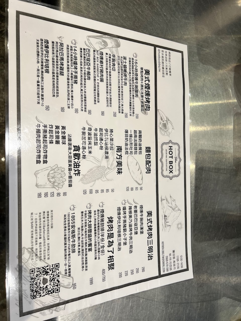 2024最新在地推薦餐廳的菜單_Hot Box Barbecue 愛河店 店休日依IG公告的菜單、圖片