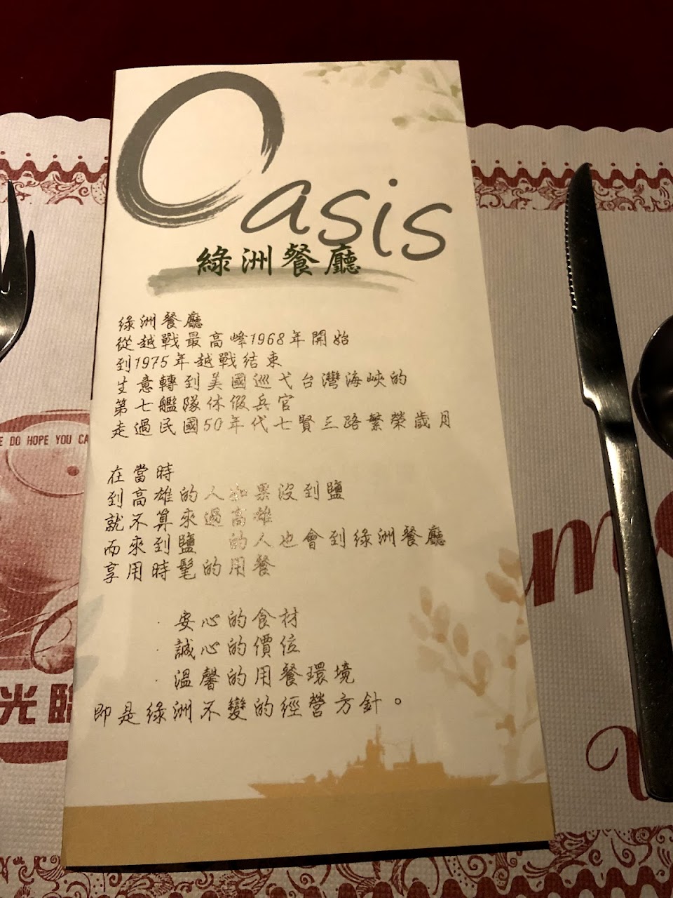 這家《綠洲》是我童年時期老爸會帶我和弟弟來吃牛排的老西餐廳,時間飛逝它應該至少有40年的歷史了吧!