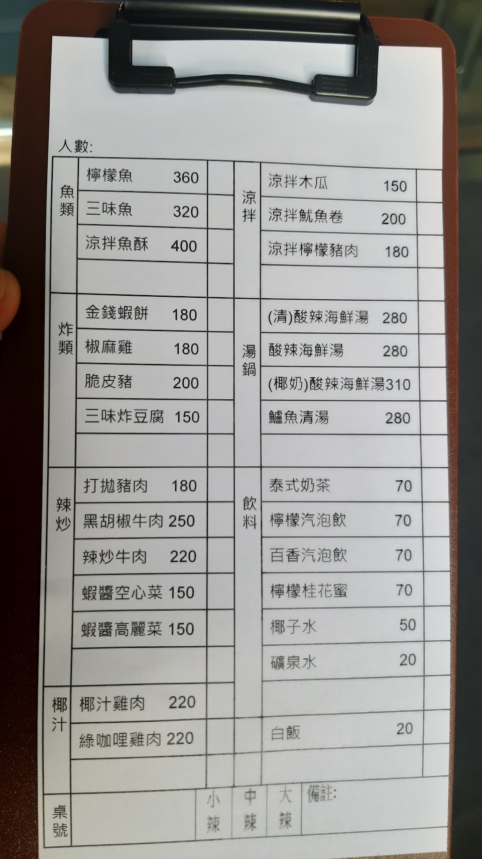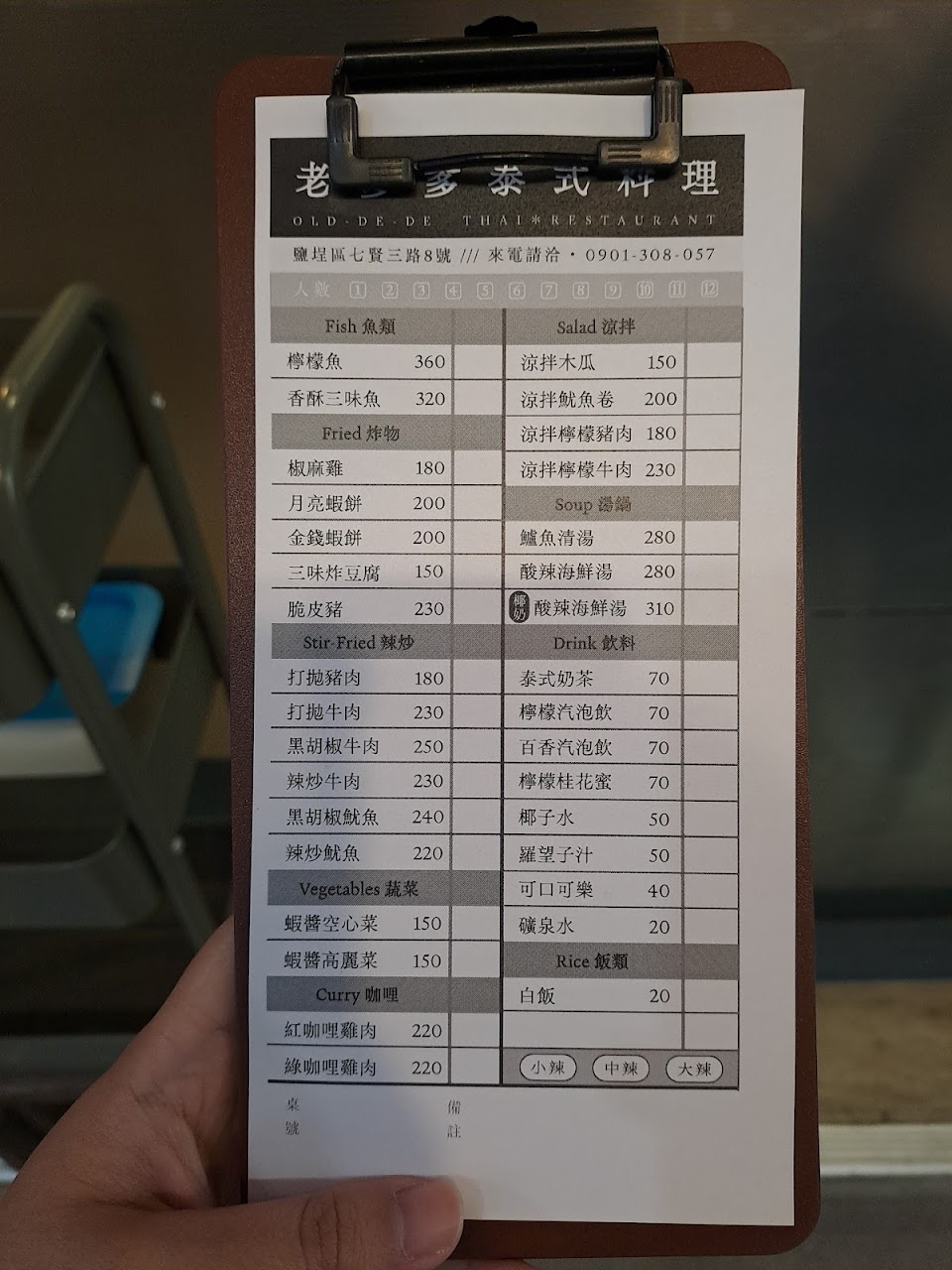 兩個人點三道菜剛好,辣度可以自選,價格以泰式來說大概是中價位?