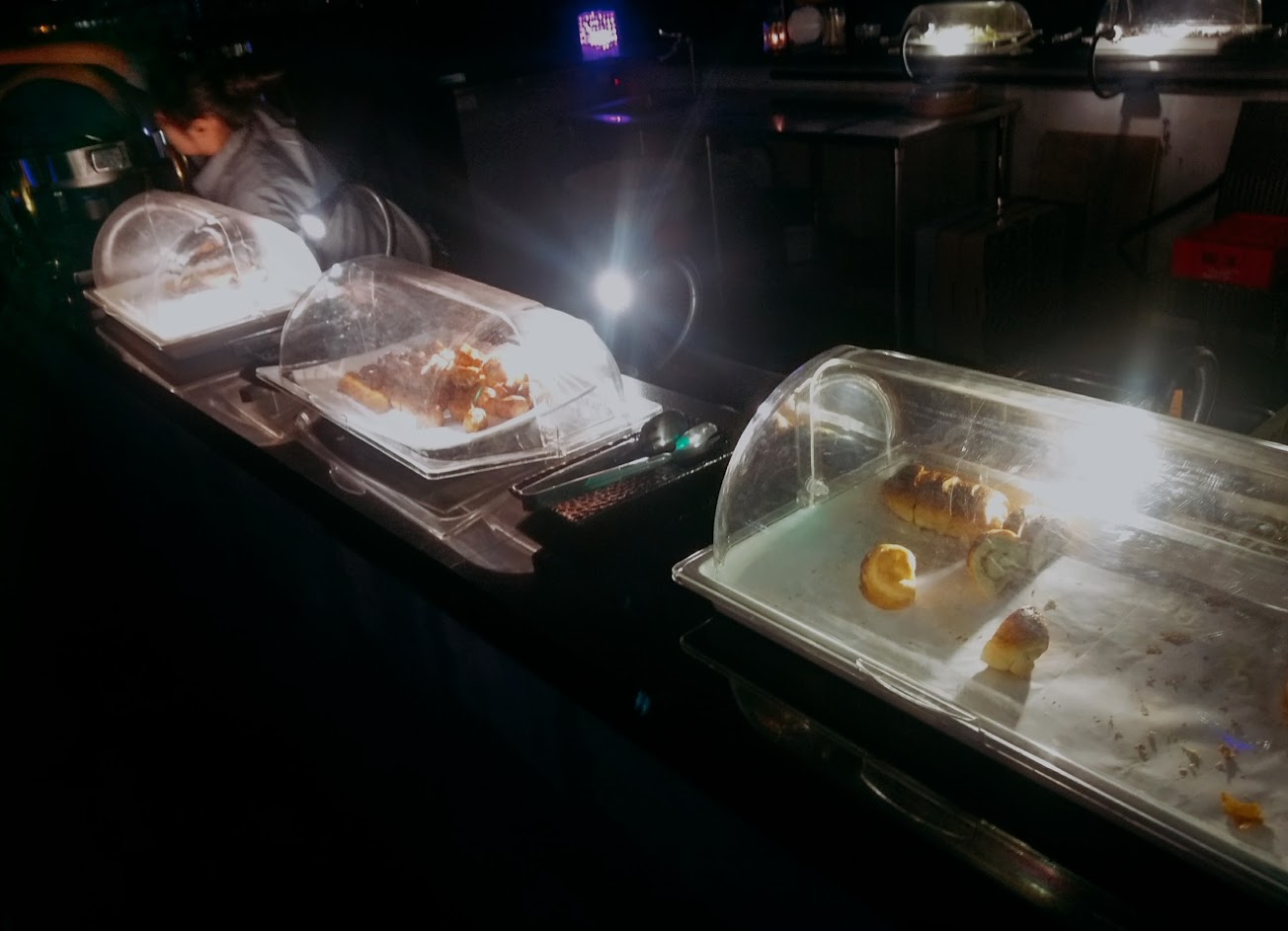 風很大的夜晚不太適合去放鬆,會很冷又不舒適。 甜點也沒有很好吃,大約8種。 前天用餐時,幾乎根本是「鹹」點。 價位為299元/人,包含一次性的飲料與提拉米蘇(或生菜捲)