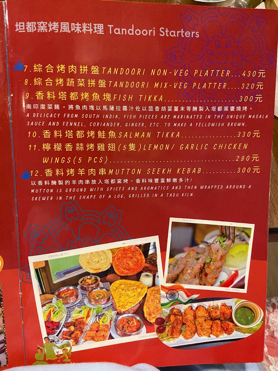 我們點了3人套餐 湯-公司湯,味道偏淡一點,其實我不知道是什麼味道? 雞肉-好吃,沾旁邊的薄荷醬非常適合 咖喱-瑪薩拉羊肉咖哩跟蔬菜咖喱,味道濃郁,香氣十足,他們的咖喱真的推薦! 香料奶茶-單喝覺得還好,但是吃完咖喱喝,味道相當搭。 芒果酸奶-吃起來滿酸的,因為我怕酸,但是同行人很愛,就是非常健康少糖的甜點。 印式米布丁-有點米跟薏仁感覺的口感,然後甜甜有點像牛奶又不完全是牛奶的甜湯,其實我還是吃不太出來是什麼?