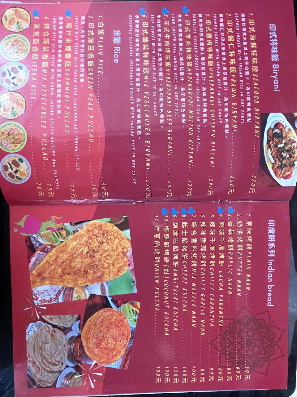 店主人是印度人,會説中文,但還是用英文點餐了。 跟我吃過的印度菜很不一樣,咖哩聞起來不會有很強烈的香料味,入口也很溫潤有風味,不會太鹹配好吃也很下飯。烤雞看起來鮮艷的紅色以為味道會很重,入口才能感受到香料的香氣,吃完不會整口的香料味,反而覺得清爽。最棒的是離開餐廳時,不會滿衣服頭髮都是味道,全世界的人都知道你吃過什麼。