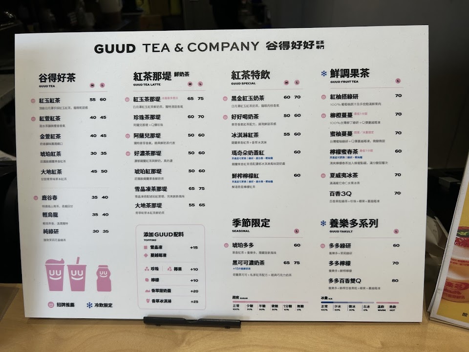 2024最新在地推薦餐廳的菜單_谷得好好 紅茶專門 GUUD TEA & COMPANY-北車信陽店的菜單、圖片