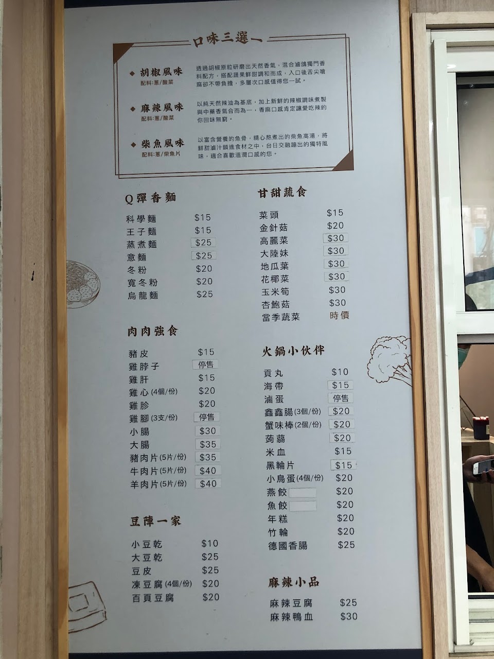 點的是胡椒口味的湯底,不太合胃口,蘿蔔的皮(白邊)沒削掉,口感很硬沒入味,麻辣豆腐沒有麻辣香,感覺有放隔夜,非常死鹹,不推薦。整體而言不會再訪
