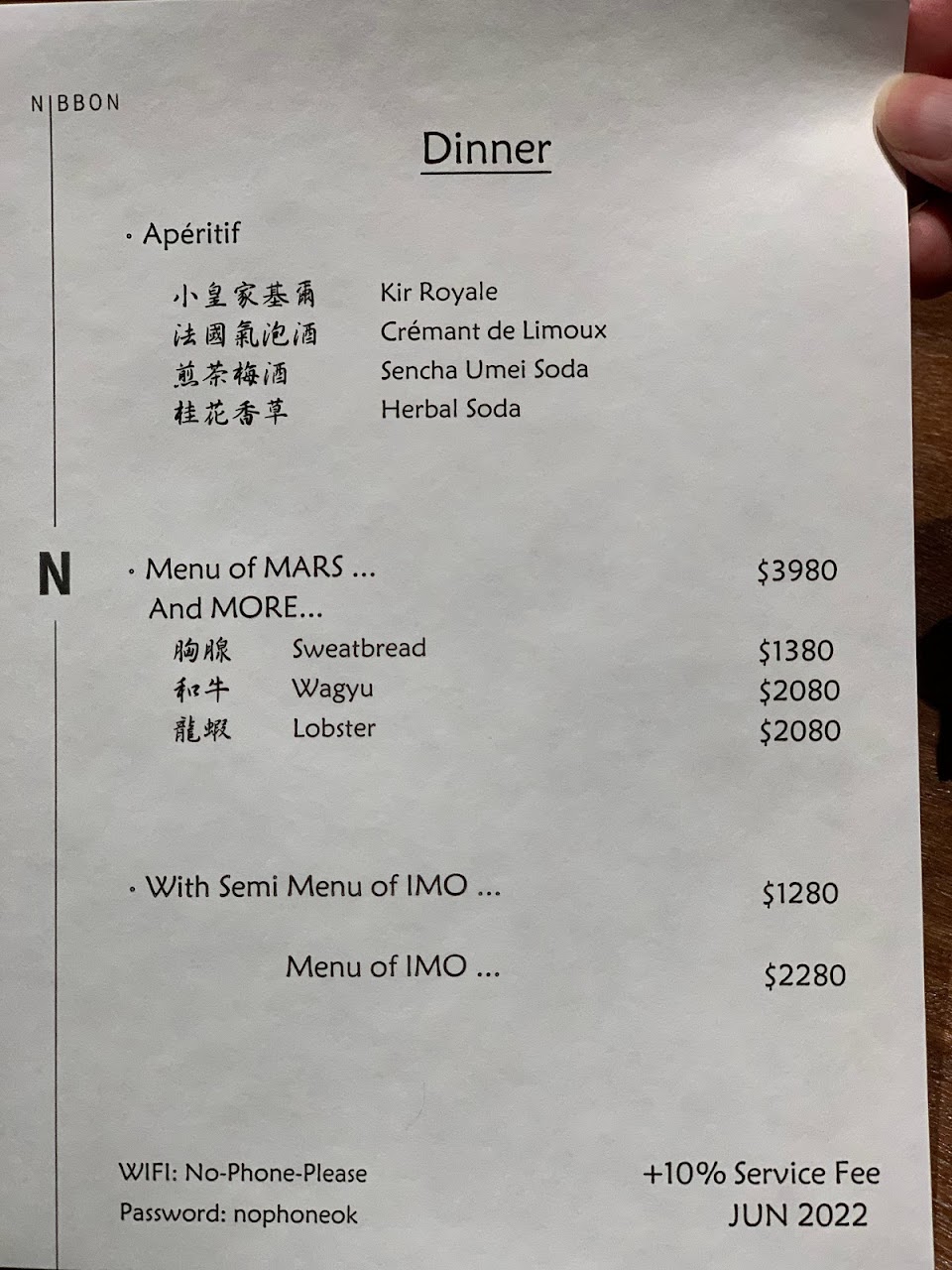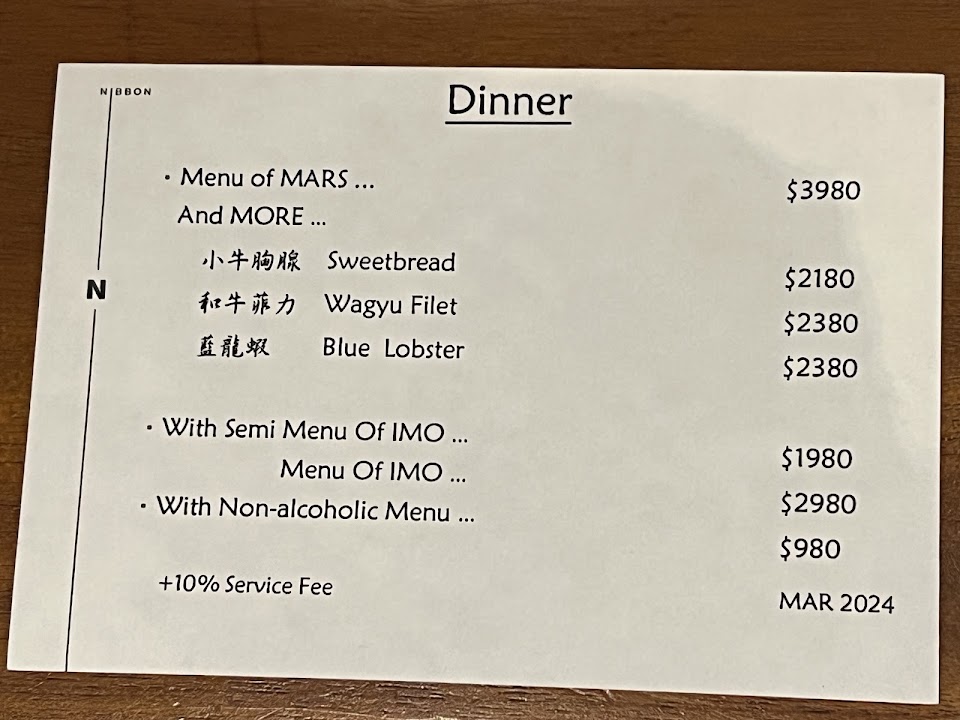 在2024/Jan/04驅車趕往高雄的途中,奇蹟似的訂到了NIBBON,也讓5號的晚餐有了著落,此次南台灣之行,只能用精彩萬分來形容。4號晚上吃Minibbon、5號晚餐是NIBBON、6號則在AKAME用餐。