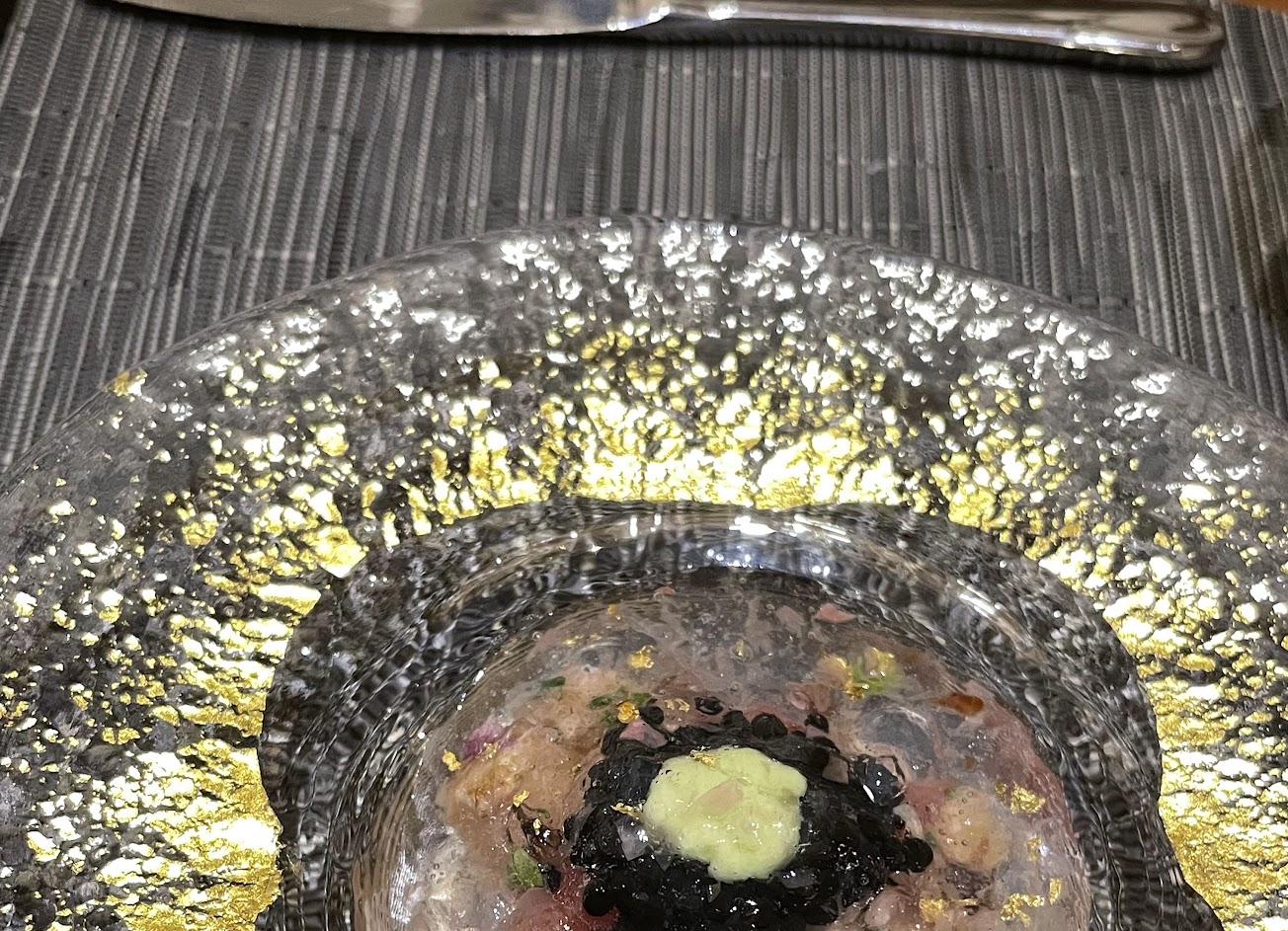 印象最深刻的是小牛胸線⠀ 表皮酥香,切開後口感滑嫩⠀ 是八道鹹點最喜歡的一道⠀ 也是有別於其他嘗過的料理方式⠀ ⠀ 玉米冷湯有使用炸過的蕎麥增添口感⠀ 蒸蛋香氣十足、帶有些許藥膳感⠀ ⠀ 開胃第一道鮪魚塔塔以西瓜入菜好清爽⠀ 暖胃的粥品、風味似雜炊、做為鹹點結尾很好⠀ ⠀ 整體而言用餐體驗是不錯的、服務也很好⠀ 有為壽星準備特別甜點 以及17:30場次的有伴手禮(小點和茶包各一) 可惜之處在於兩人共點了四樣主餐⠀ 因主餐醬汁基本都有菌菇醬為底⠀ 品嚐不出醬料上太大的差異⠀⠀ 還有多點兩份主餐要再加價$5520這點⠀ 日本和牛的肉質和熟度上可以⠀ 另一份龍蝦太硬、份量極少、一個女生四口的量⠀ 除非其他主餐食材都不吃⠀ 不然真的建議不要多花錢踩雷? ⠀ 但當天人員有告知新菜單就會變單一主餐了⠀