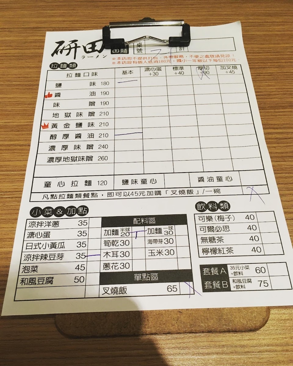 2024最新在地推薦餐廳的菜單_研田拉麵的菜單、圖片