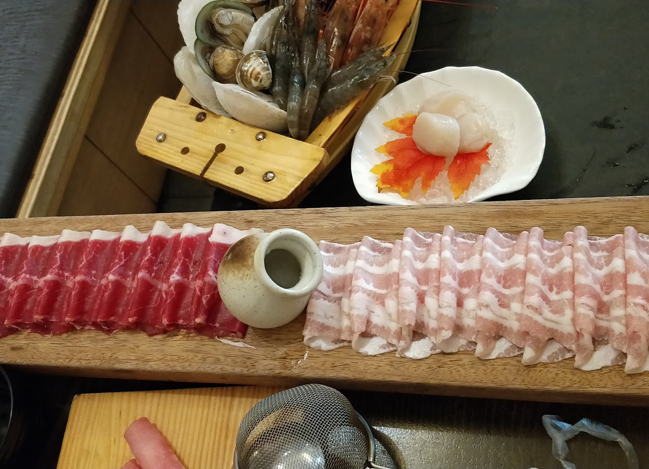滿特別的是還有很多蝦子海鮮種類這個一般壽喜燒店沒有的 。