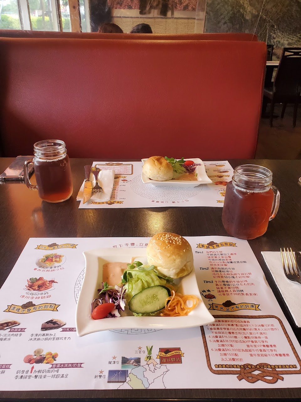 沙拉?也還不錯,停車?️方便、自主點餐也很方便且結帳速度很快,服務很好很熱情?,本來是點40oz 7分熟服務生看到有提醒我們沙朗不建議吃那麼熟建議我們吃5分就好不夠熟還可以回烤,後續態度真的很好,很喜歡這家店蠻推的?✨