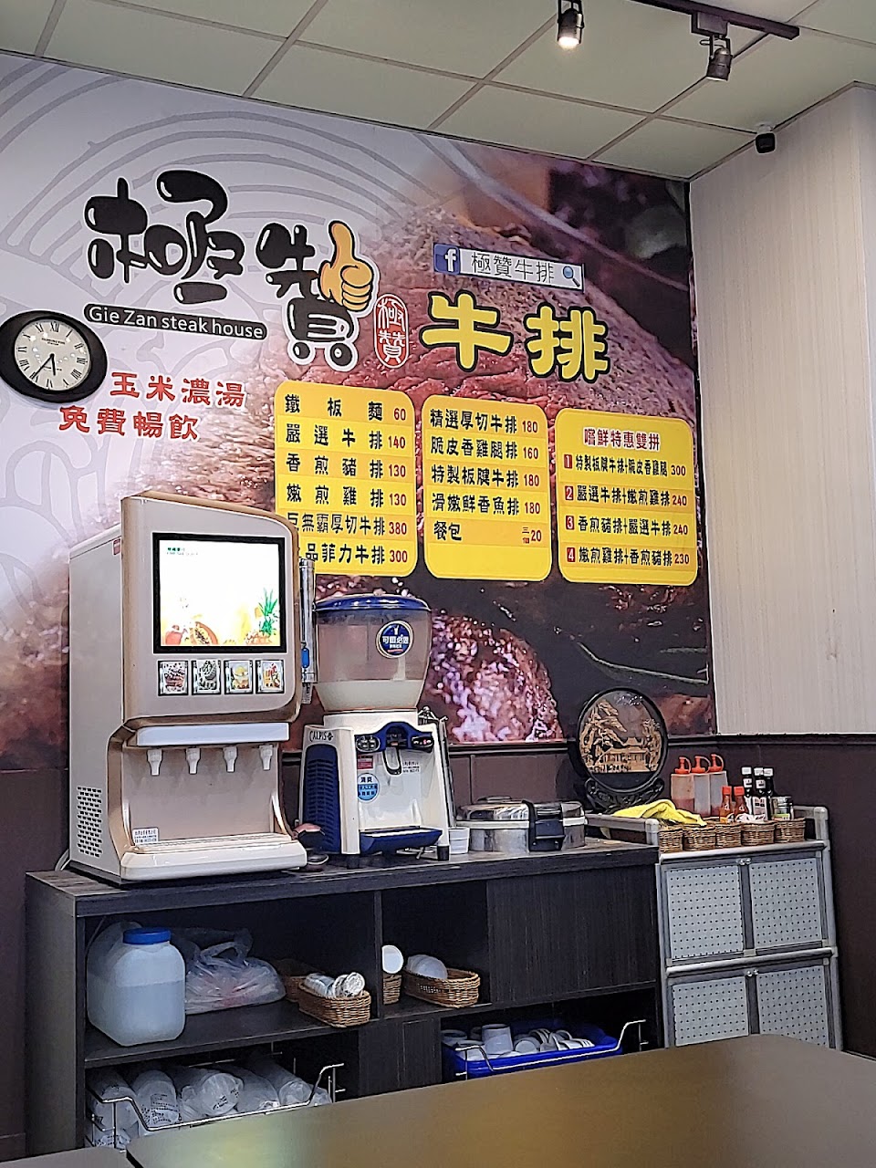 牛排好吃?,玉米濃湯、紅茶免費,老闆總是客氣的與客人打招呼~非常客氣。