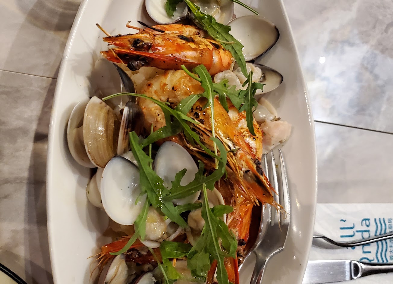 青醬海鮮燉飯很道地,朋友是比較喜歡米心偏硬的燉飯,跟服務生說了之後,廚師也確實有照我們的要求做,超棒。