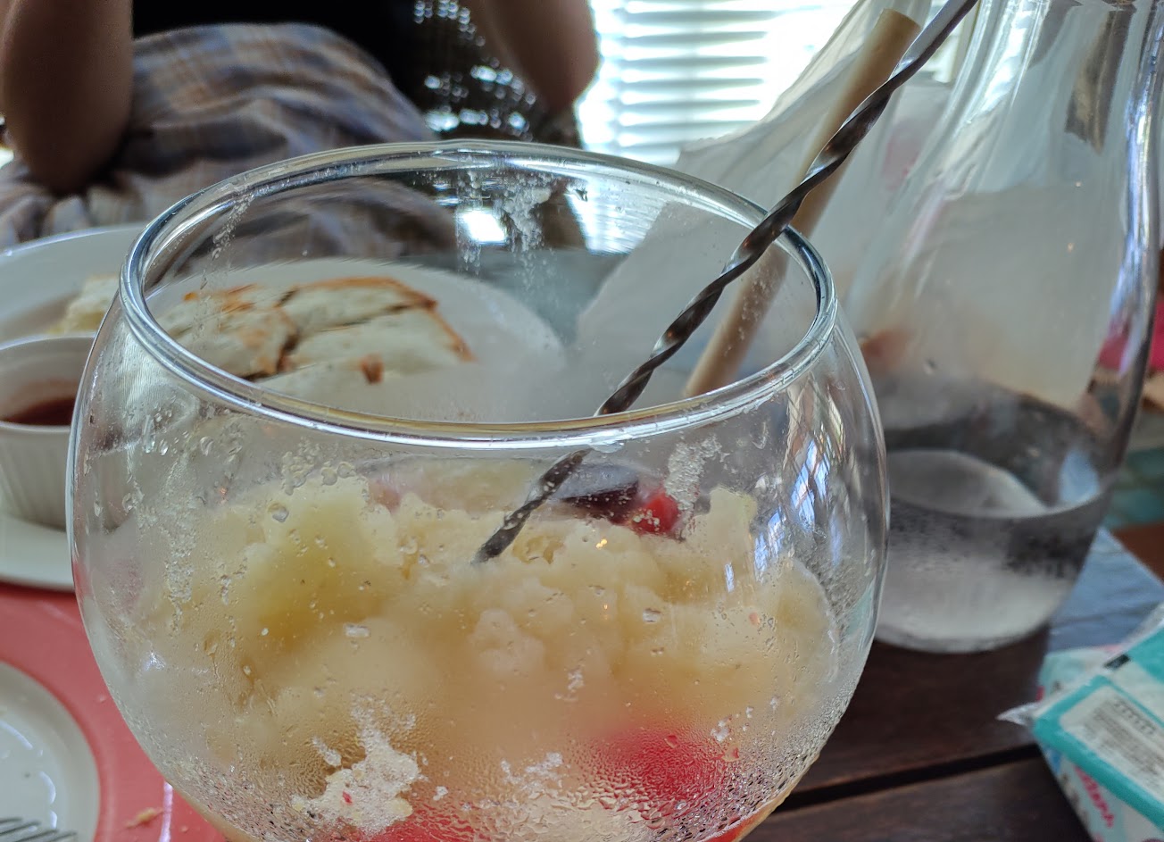 The size is like a fish jar big, enough for 2! It’s with different kinds of seasonal fruit in it, but tastes a bit watery.