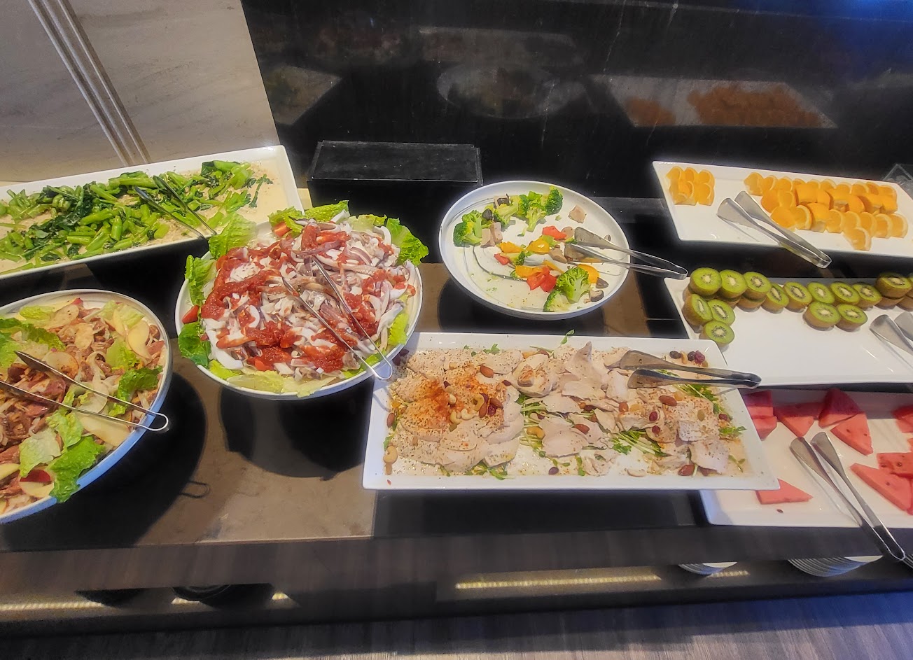 1.生菜沙拉算新鮮 2.冷盤海鮮區鮮度還可以 3.主餐義大利麵與燉飯都中規中矩….. 4.今天的主題應該是泰式週….個人覺得不優…..該酸辣不酸辣…綠咖哩完全不像綠咖哩,檸檬魚是多利魚…椰汁雞湯很水 5.公司招待的烤香魚怎麼有辦法變成魚乾…傻眼…….