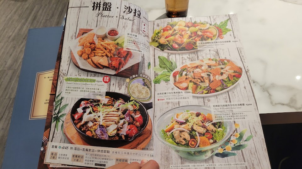 英式炸魚薯條, 脆皮香料雞腿起士菠菜燉飯, 香蒜焗烤田螺, 沙拉, 松露薯條, 夏威夷披薩, 水牛城辣雞翅, 歐利歐巧克力冰酷樂, 濃湯