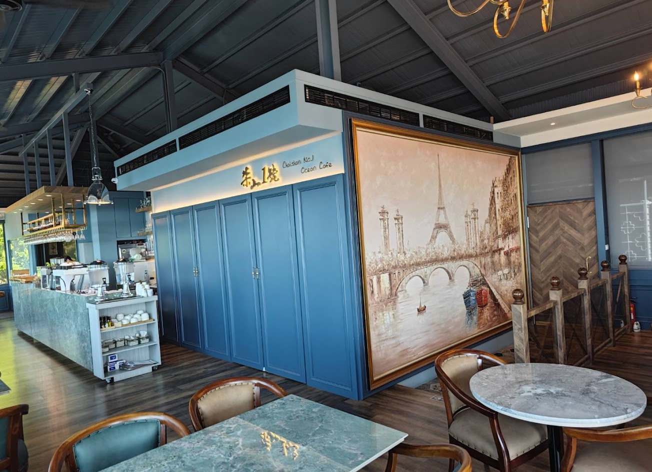 這家咖啡廳算是柴山上最新的一家咖啡廳,有自己的停車場,位置對於上山的會比較順,景有居高臨下的優勢,也有很夯的天空步道設置。室內裝潢走歐洲風,可從窗戶看向海邊別有風味。但是今日前往時,於一樓有一位阿姨及大爺一直讓人有壓迫感,似乎很擔心到來的客人不消費會直接跑掉的樣子,一直貼在旁邊瘋狂關心,感受稍差。而餐點價目真的就是觀光區會出現的價錢,就是「貴」。