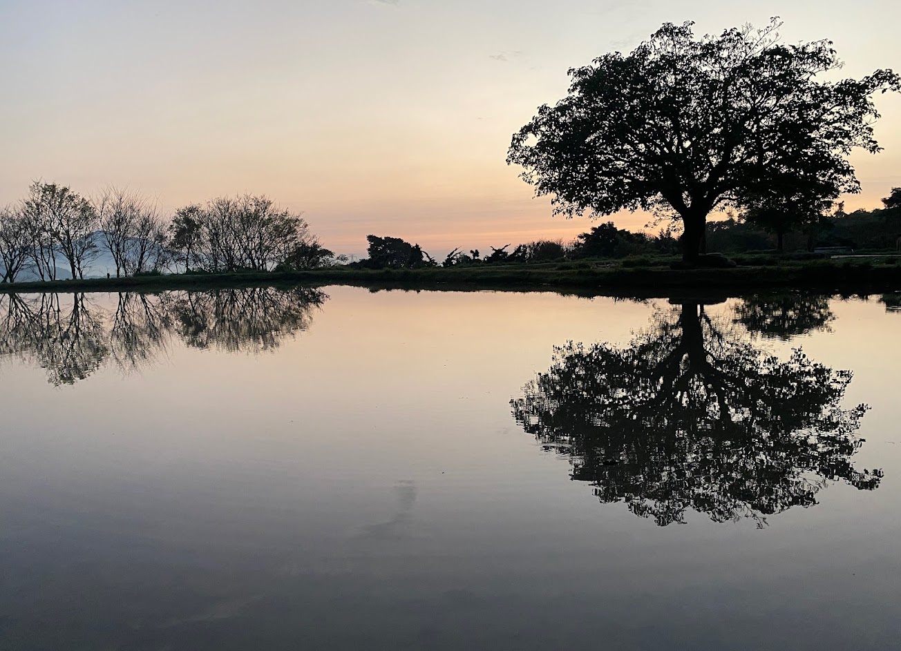 原是一處休耕的田地 經過水保局環境再生計畫成了現今的小八煙,以為小小一兩池而已 結果比想像中大 環境整理得不錯 可環著池子繞一圈散步 或是坐在樹下眺望遠山 山的輪廓像人的側臉 夕陽西下時拍倒影很美