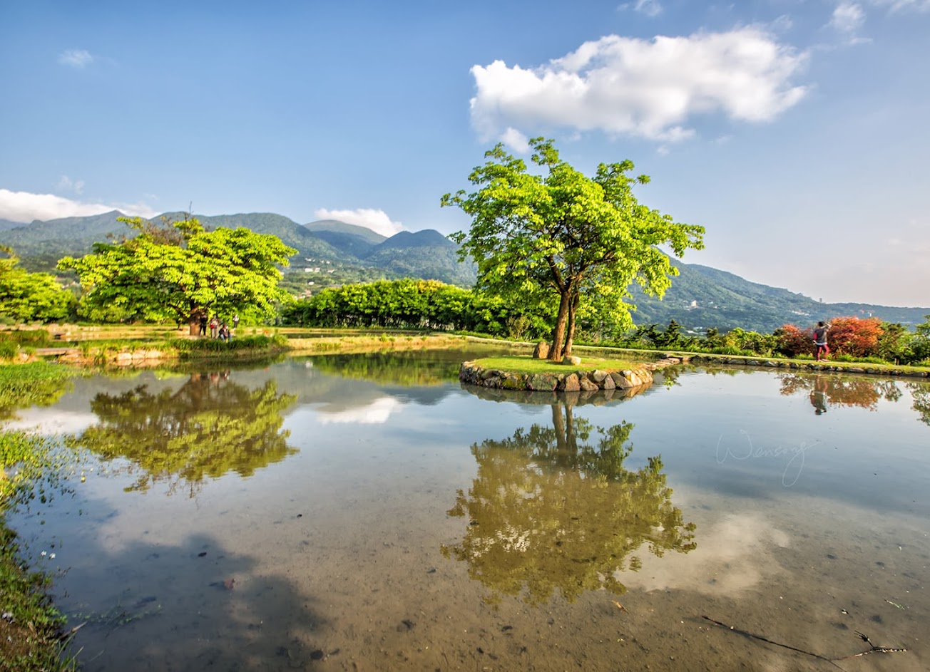 地處三芝一處政府規劃休耕農地!休閒小步道環境僻靜清幽,山光水色,水中倒影拍攝留影打卡的好景點!