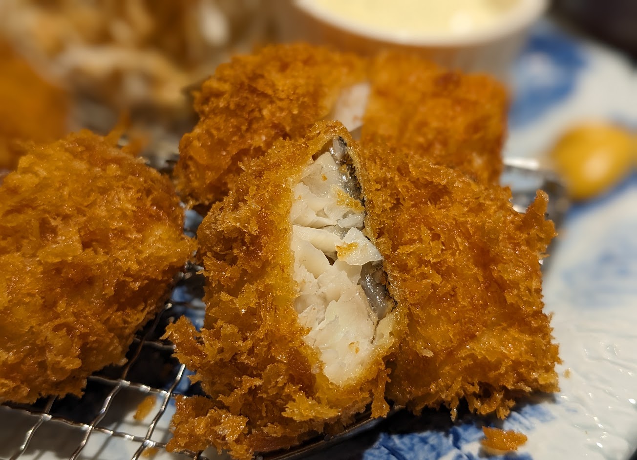 炸牡蠣很大顆,但是吃起來有點腥味,一定要配沾醬不然無法入口