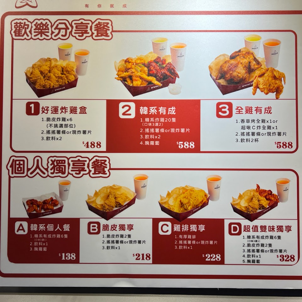 2024最新在地推薦餐廳的菜單_YOU成炸雞的菜單、圖片