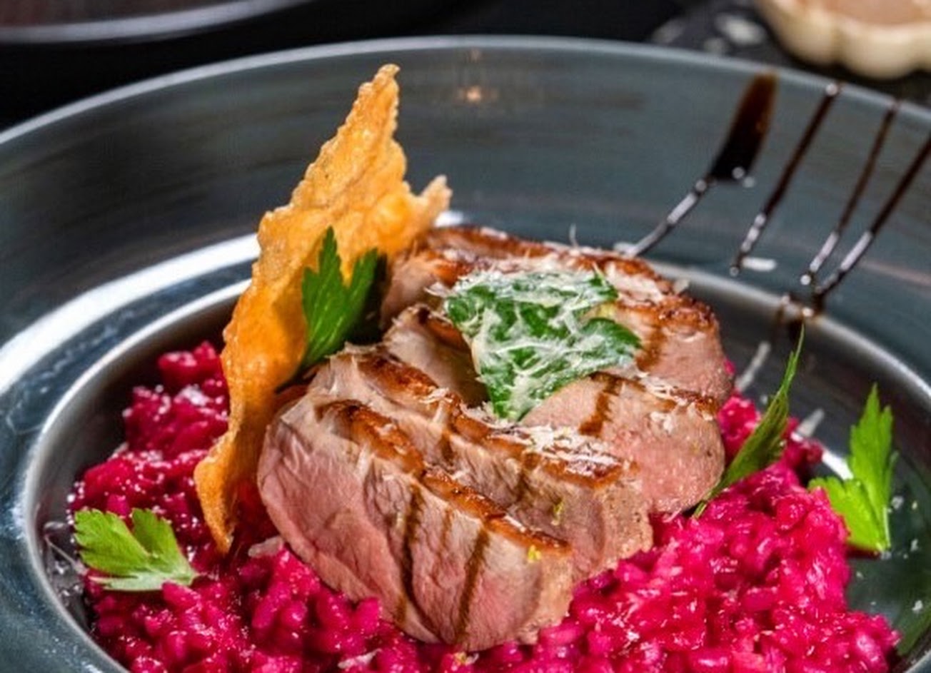 鴨胸甜菜根燉飯口味很特別~也很好吃~上菜謎之神速 店內氣氛很好,桌子間距舒服不擁擠,聚餐或是小酌一杯都很適合!