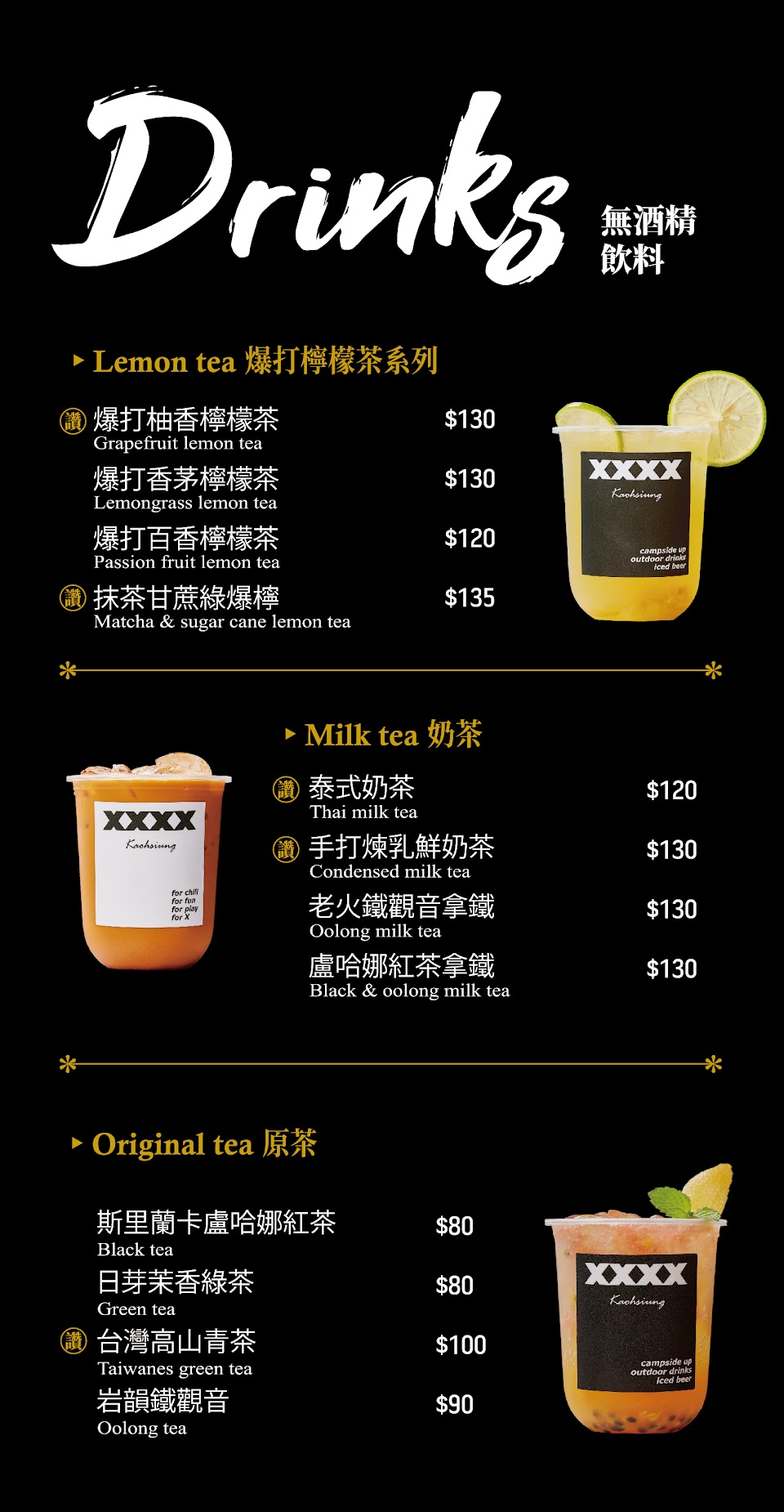2024最新在地推薦餐廳的菜單_[XXXX kaohsiung – 四乘高雄](暫停營業中)露天餐酒/酒吧/飲料/輕食/酒吧/聊天小聚/續攤的菜單、圖片