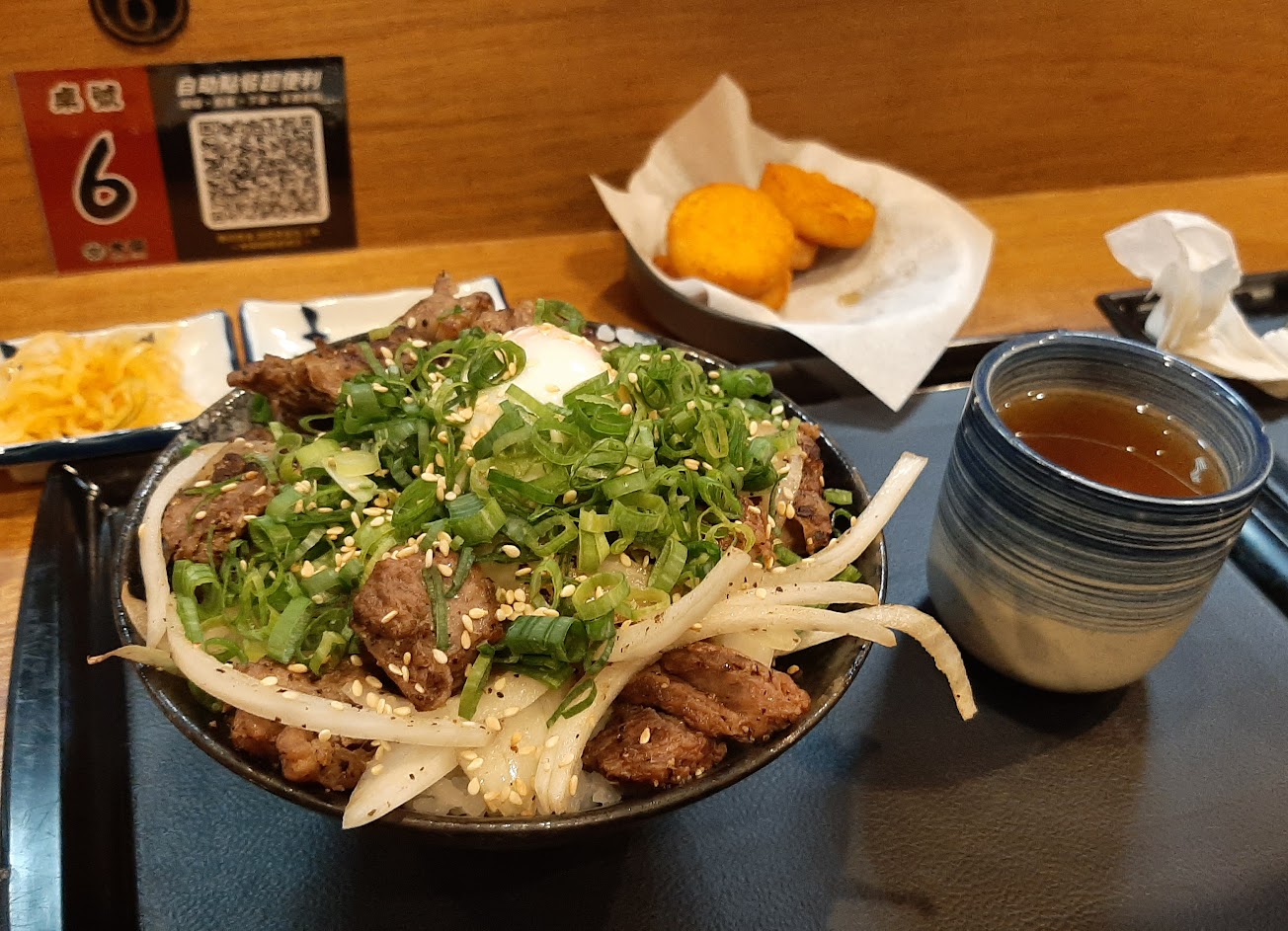 晚上六點左右來用餐,內用空間約8個,已經全滿;原本決定坐外面(約5個位子),剛好有客人吃飽,所以進到店內。
