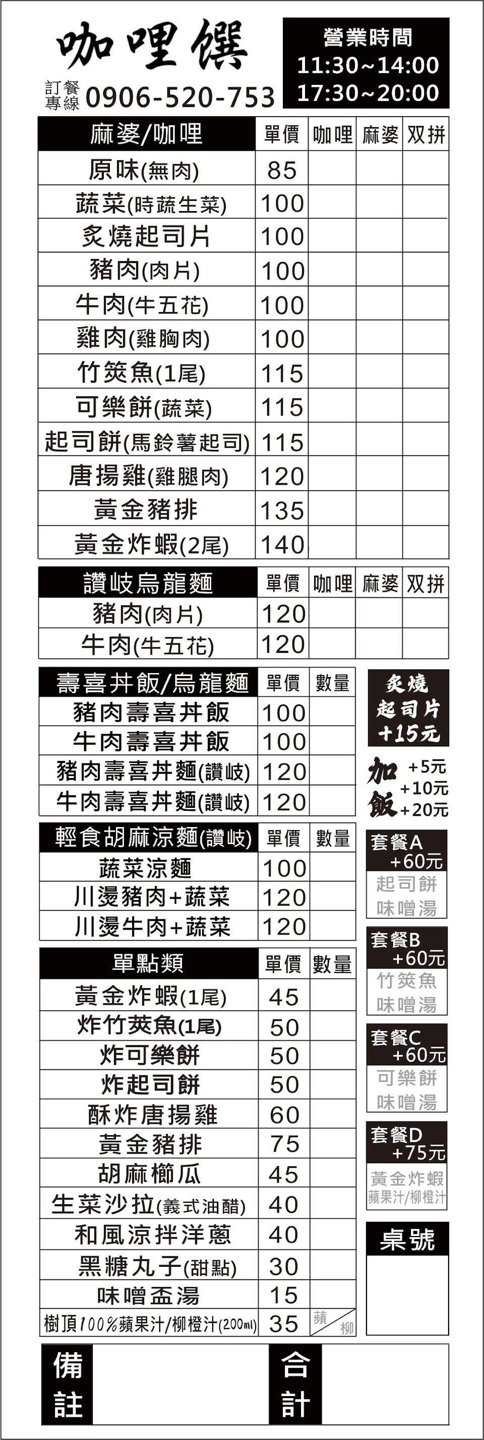 2024最新在地推薦餐廳的菜單_咖哩饌的菜單、圖片