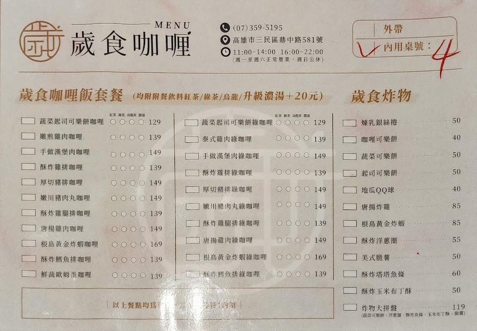 2024最新在地推薦餐廳的菜單_歲食咖哩的菜單、圖片