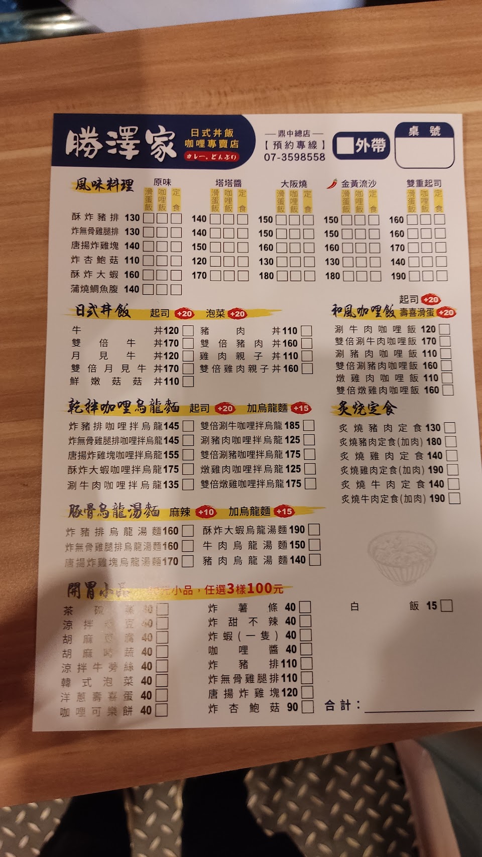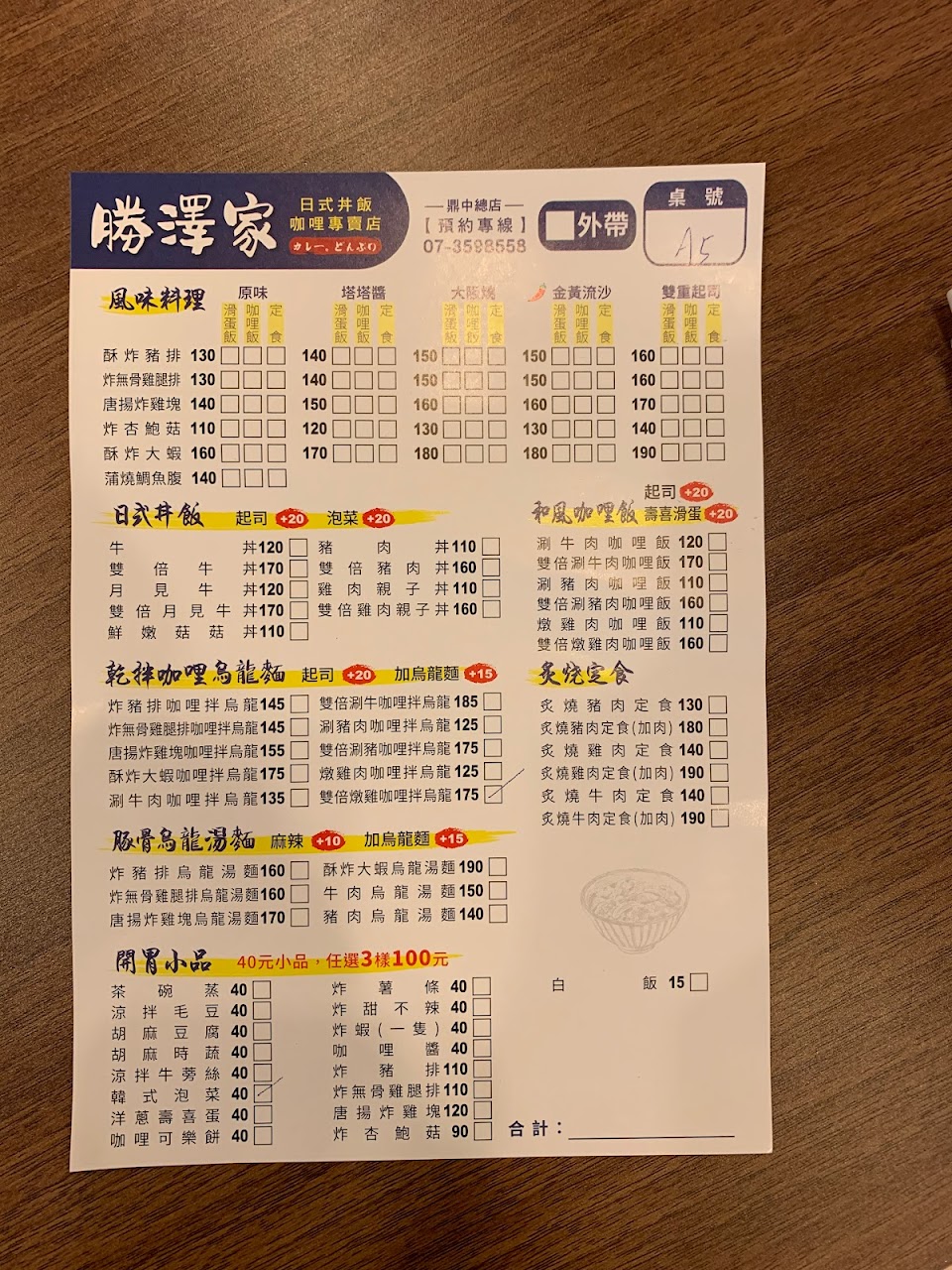 2024最新在地推薦餐廳的菜單_勝澤家(高雄鼎中店)丼飯、咖哩專賣店的菜單、圖片