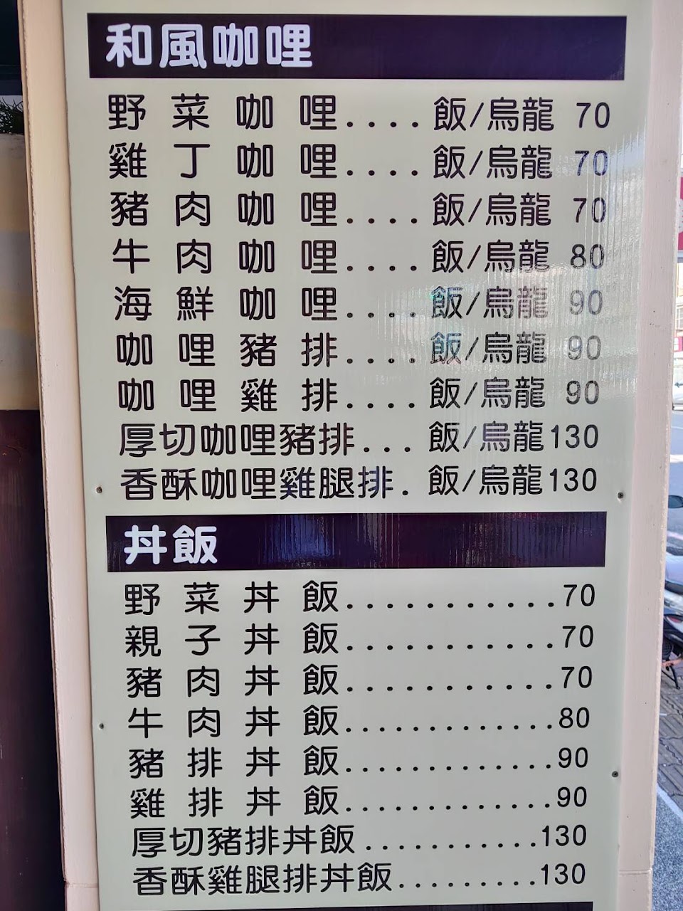 咖哩飯80元起跳,而且不會太鹹,裡面紅茶會甜而且可以無限暢飲,還有內用加飯免費超讚?的><