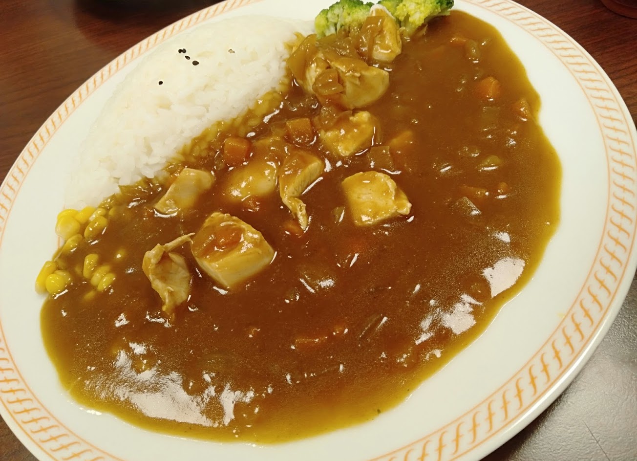 咖哩雞丁的雞肉是用雞胸肉,不會太柴,可是雞味有點濃,個人是還蠻怕那個雞味的