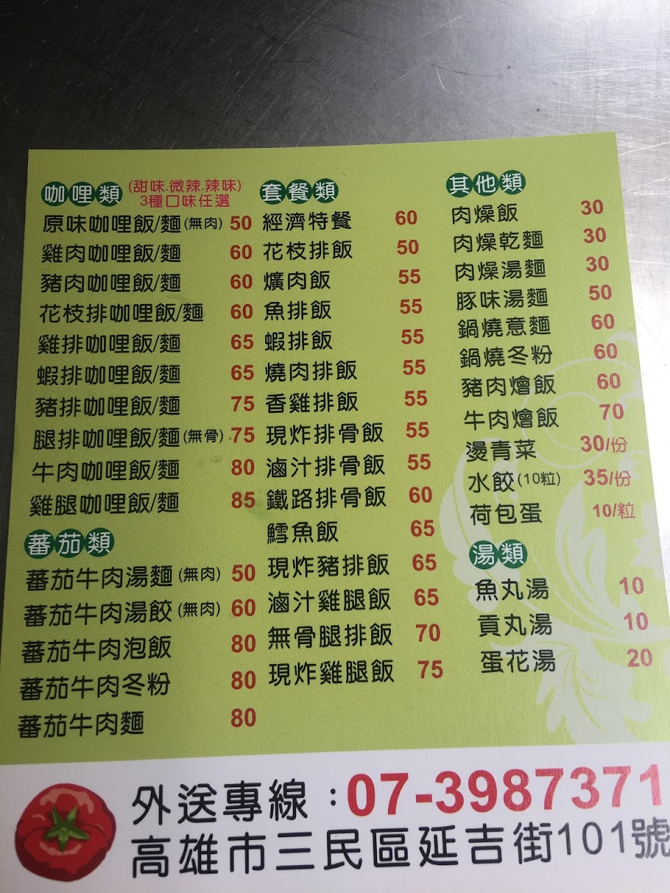 簡餐價50-80元三青菜加1/4煎蛋及一主食,價廉物美,有紅茶及清湯,重點店內有冷氣可吹及電視可看,在炎熱夏日真是佛心來的!老闆及老闆娘人親切,住附近買百元還可外送,實有夠讚!