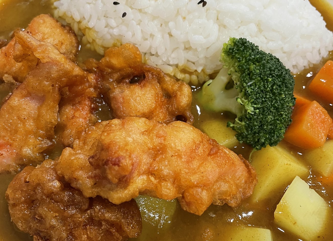 豬排、魚排酥脆,紅蘿蔔、馬鈴薯還蠻多的,咖哩醬好吃。