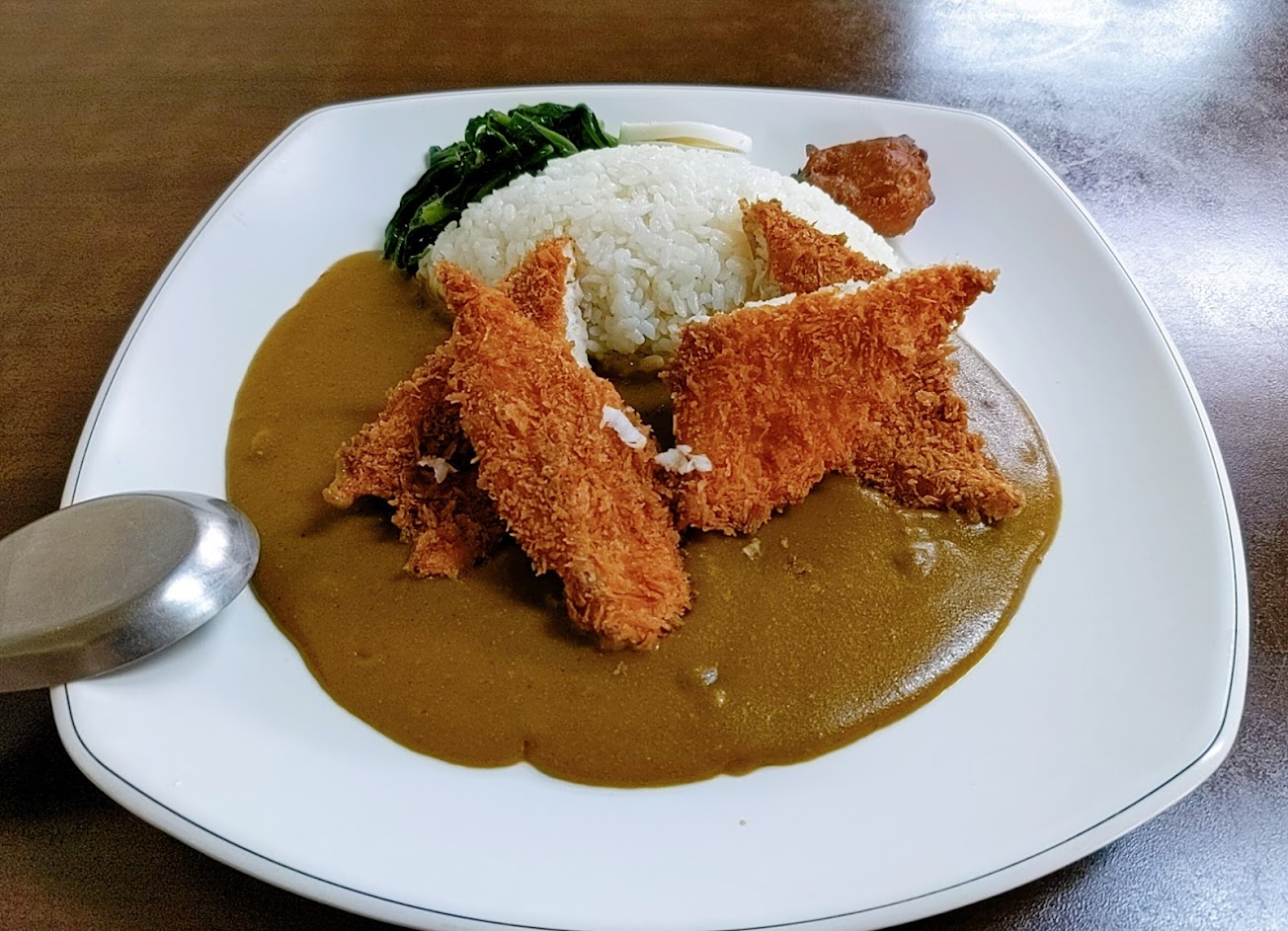 看了google的高評價來吃的,咖哩豬排鮮蝦飯的豬排很大塊,3個蝦子是帶殼炸的,麵皮炸的很酥脆,咖哩飯用另外的盤子裝還有附上一些小菜;咖哩雞肉蛋包飯的飯是炒飯,搭配蛋皮、醬汁很好吃;培根炒高麗菜很好吃;酥皮濃湯的湯有滿滿的海鮮料湯頭濃鬱配上酥皮真的很搭,食量大的人建議可以加點。