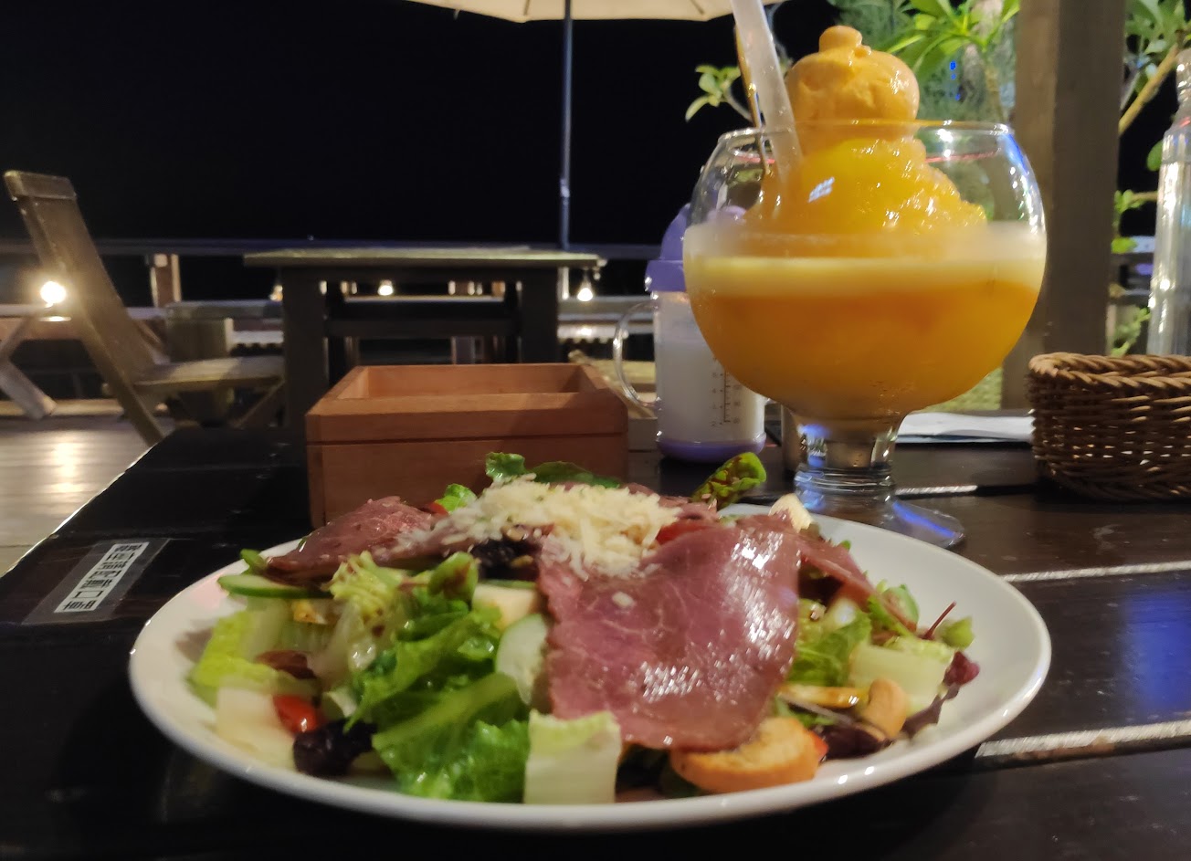 後門可以通往海灘,很酷。聚集的海景餐廳都在這。