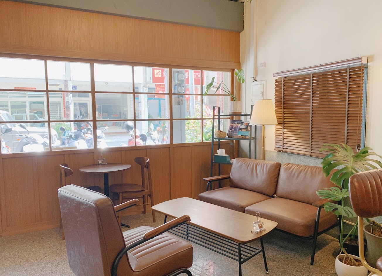 老屋改造的空間,簡單的格局,擺上舒適的桌椅,走木質調的櫃檯安排,配上質感相應的皮製椅,一種新老屋的氛圍。