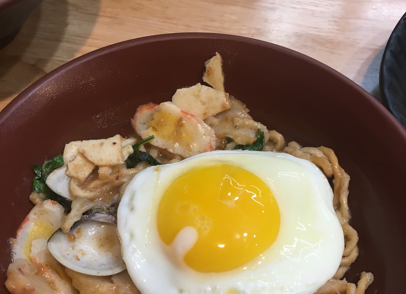 胡麻牛蛋餅好吃,表皮有點脆脆的,但是底下胡麻醬汁沾到變軟了,裡面有一點生菜洋蔥還有牛肉,甜不辣也好吃