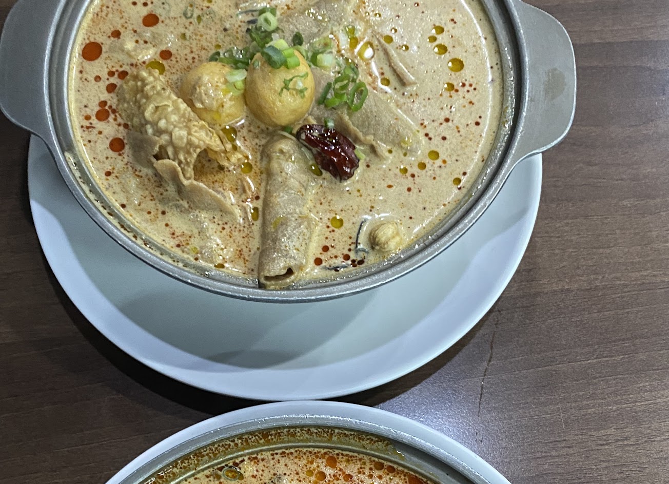 觀望很久的店今天終於來吃,點了大家都推的麻奶堡。我的天啊這湯頭也太驚艷了!有別於台式的麻辣完全不會麻,這個麻度真的超棒!加上滿滿奶香跟其他香料的香氣,口感真的超級棒!點了公仔麵版,把麵全夾出來發現麵好多!料耶很多,三大塊鴨血跟兩大塊板豆腐,吃的超飽!下次再來吃麻辣鍋!