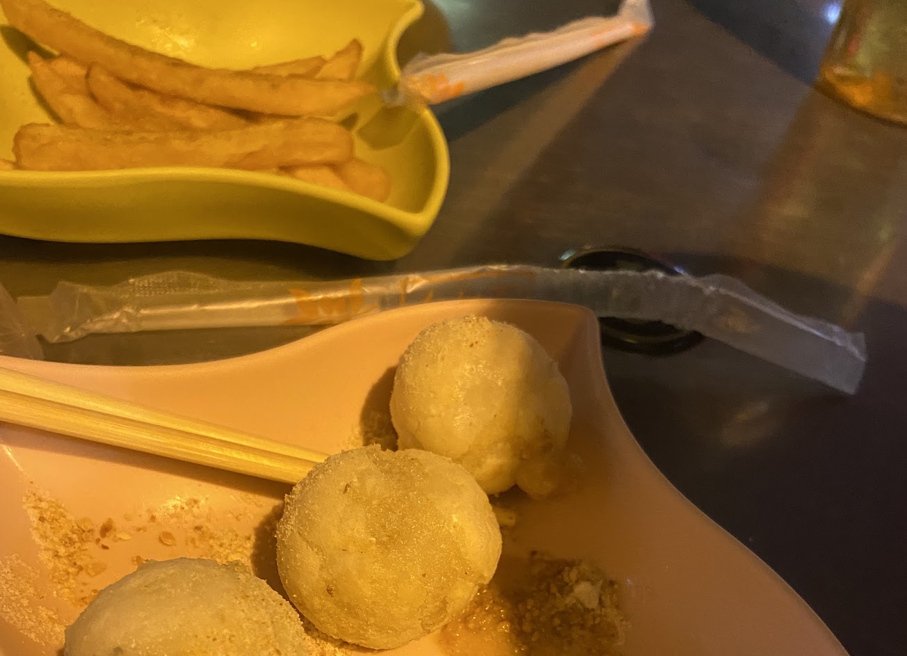 點了炸湯圓本來以為是一般小湯圓,結果竟然是會爆漿的!太好吃了~