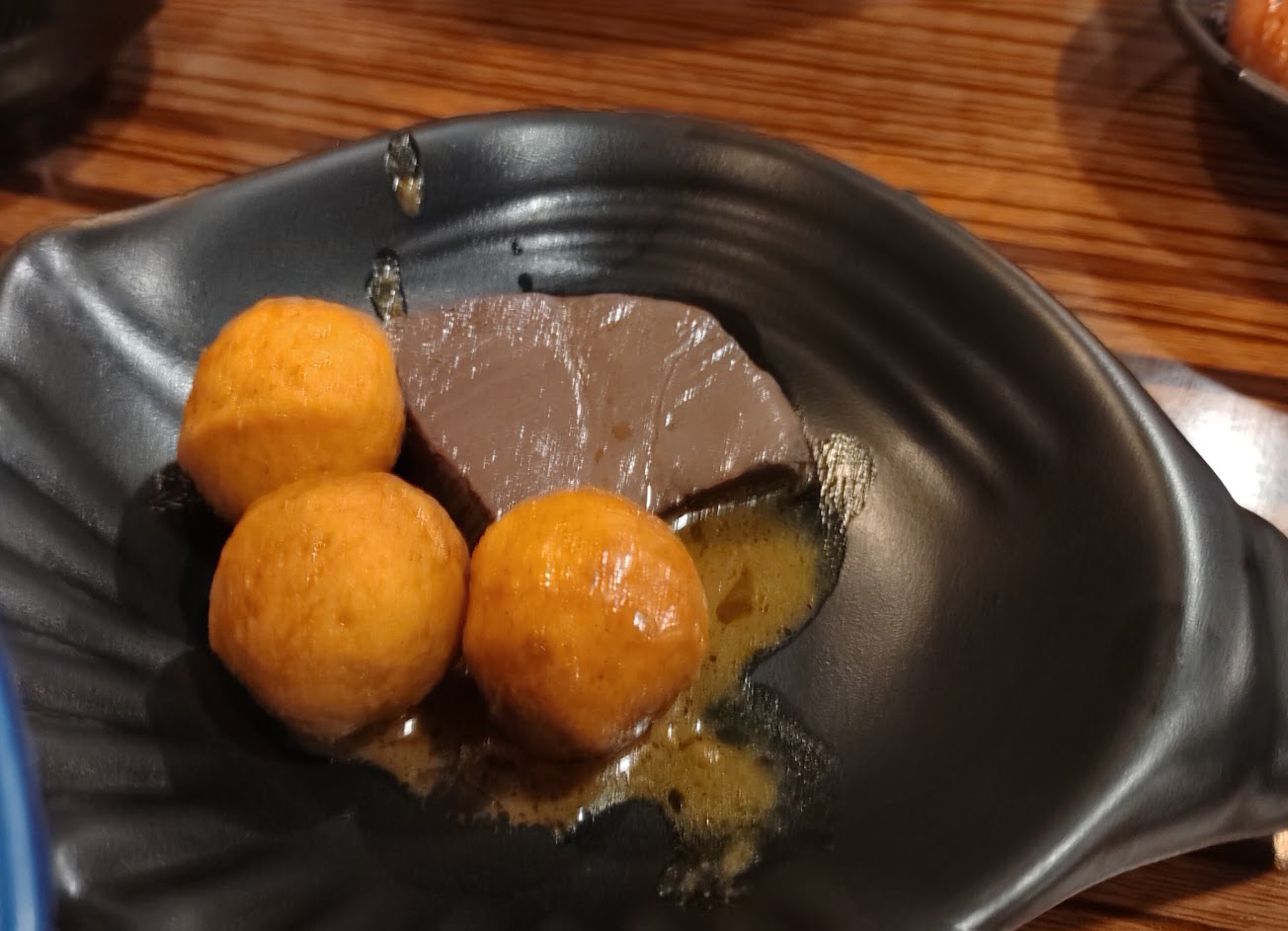 爆漿瀨尿牛丸:滿心期待會在嘴裡噴汁,可是沒有,有點失望,就是一般有餡的貢丸,沒很特別