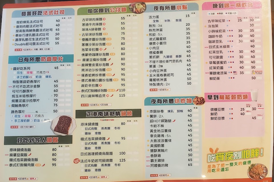 從早餐到宵夜都可滿足,口味上也還不錯又不貴。
