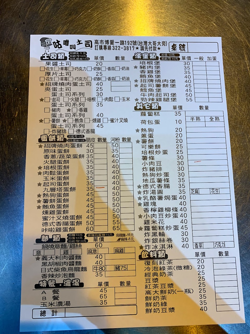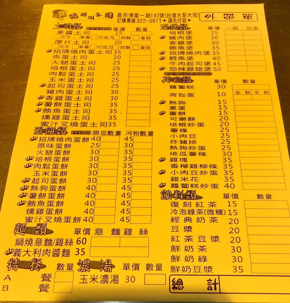 2024最新在地推薦餐廳的菜單_咕嚕叫土司 博愛店的菜單、圖片