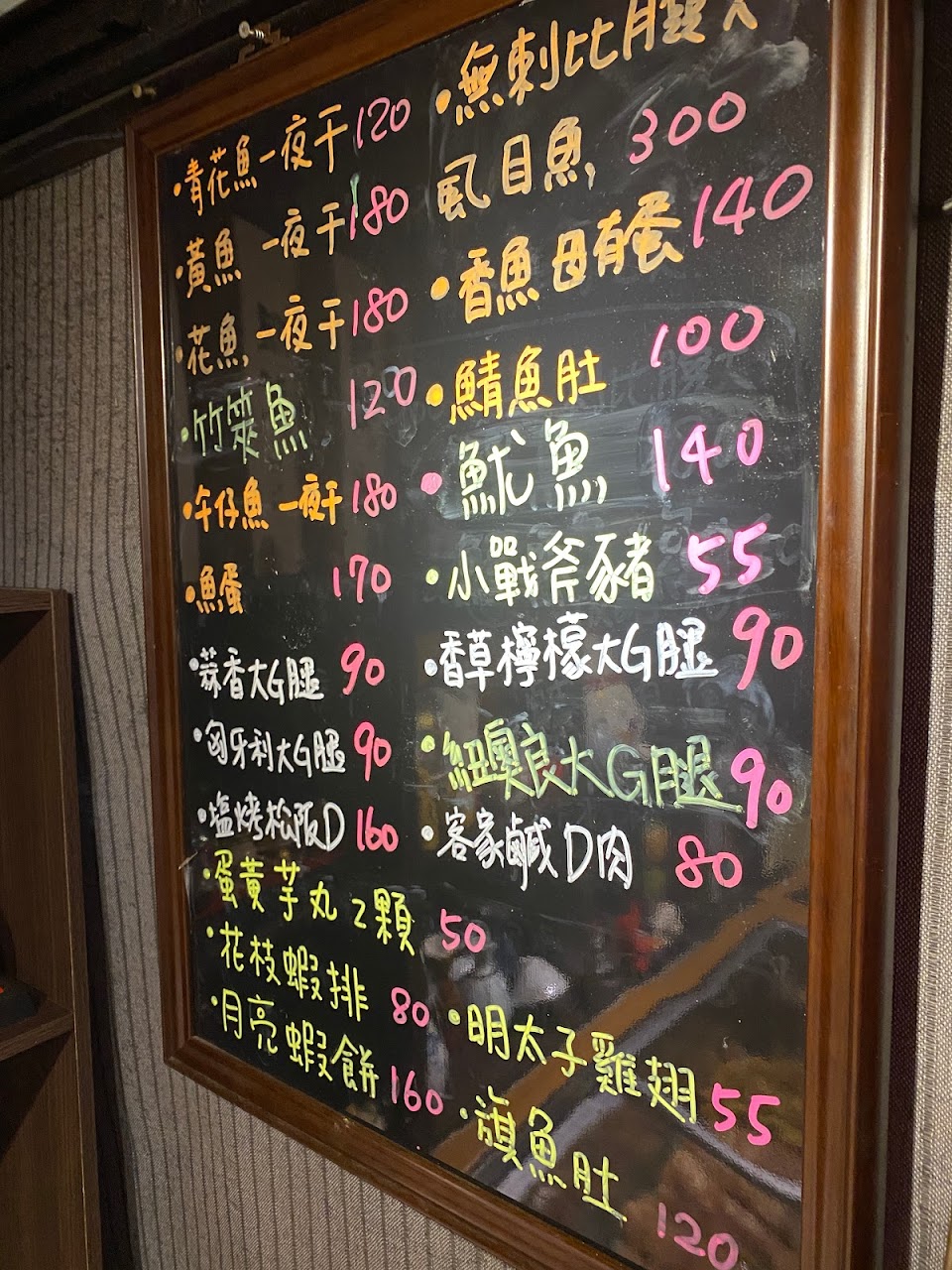 某一天近宵夜時段搜尋到的美食 看了網頁的介紹 為了要把那些特色吃遍 短期間去吃了4次 第1次20:30後去吃的 東西顯的有點少 也就當作試試 才點了300多 東西是1樣1樣出的 就算是1串雞皮也會用1個盤子上 味道很是特別 一般人一定不能忍受上菜太慢 對於愛吃的我是能體諒 反正慢慢品嚐也沒人趕你 吃了4次有點遺憾 因為始終還是不能吃完所有介紹的產品 尤其是蝦子 18:30去的也是沒吃到 可能預約的客人都先點走了 價錢的部分也都跟介紹大為不同了 第4次較為反感的是 我們於開店第一時間到達 可能是我們比較不懂規矩不知道這裡都採預約制 一旦預約也有可能就是預約到滿 曾經2次都是坐到別人店裡去 當然我們不是沒禮貌的人也一定會點上該店家幾樣菜 即使是1菜1湯 也就因為太早去又沒預約 當下問老闆開始營業了嗎? 老闆說要20:30了 讓我們有點傻眼 幾個人去旁邊的小北閒晃了一下聊聊哪裡還有類似的 本想去左營那邊的 突然想到會不會是老闆詞不達意 是預約的部分已到20:30 所以決定改成打電話再問一次 真的畢竟是兩個方向實在不願意多跑一趟 況且還帶著想介紹美食給他的朋友 果然接電話的妹妹回答就不太一樣了 所以18:30就排到位置雖然還是又坐在別人店裡 不過這讓人回想到老闆的表達能力為何要⋯⋯ 當天的食物與之前有所落差 不知道朋友的感覺如何 不過真的有差 尤其是烤吳郭魚 前2次ㄧ直再討論這魚處理的真好 雖然有點像烤魚下巴的口感但是香酥的口感與那處理的乾淨手法真的讓當下不太愛吃魚的人都搶著吃 特別的是連魚皮都能吃 一般吳郭魚都是抹大量的鹽烤 聽說這種魚是不能去鱗片必須這樣烤所以魚皮通常是吃不到的 但是這次烤的有點濕爛 吃起來不香酥又很軟爛 莫名也多了一些蒜碎 通常我是不吃外面的蒜頭的 因為那都是買人家處理好的整包那種會有一個味?