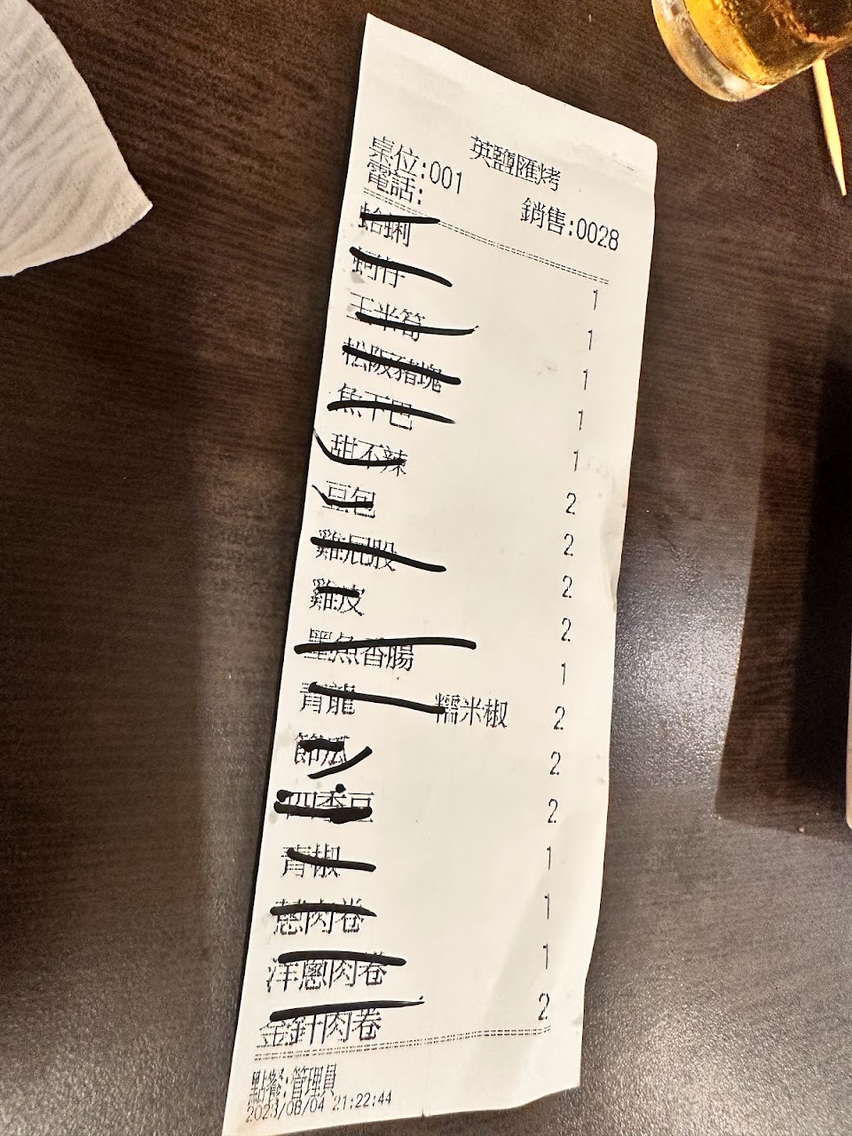21:00以後去基本上選擇很少,建議電話先訂位,預訂想吃的食材,黑輪片烤的恰到好處,黑胡椒牛肋條油脂豐富,缺點是筋太多,但這個價位已無從挑剔了。