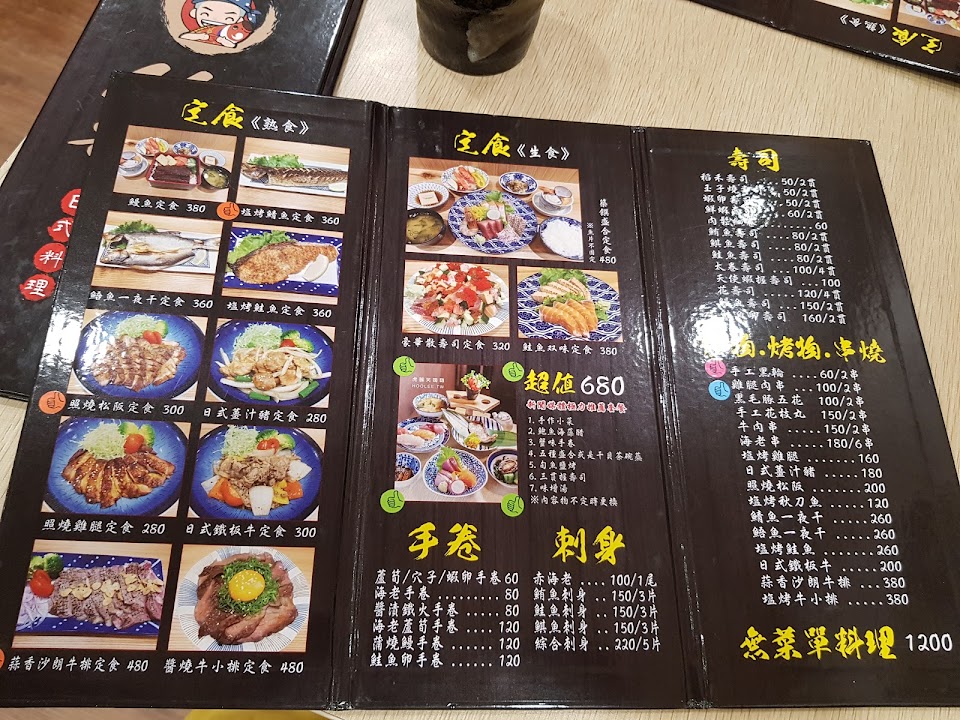 有定食套餐、熟食、生食、烤物、手卷、壽司等多樣選擇,
