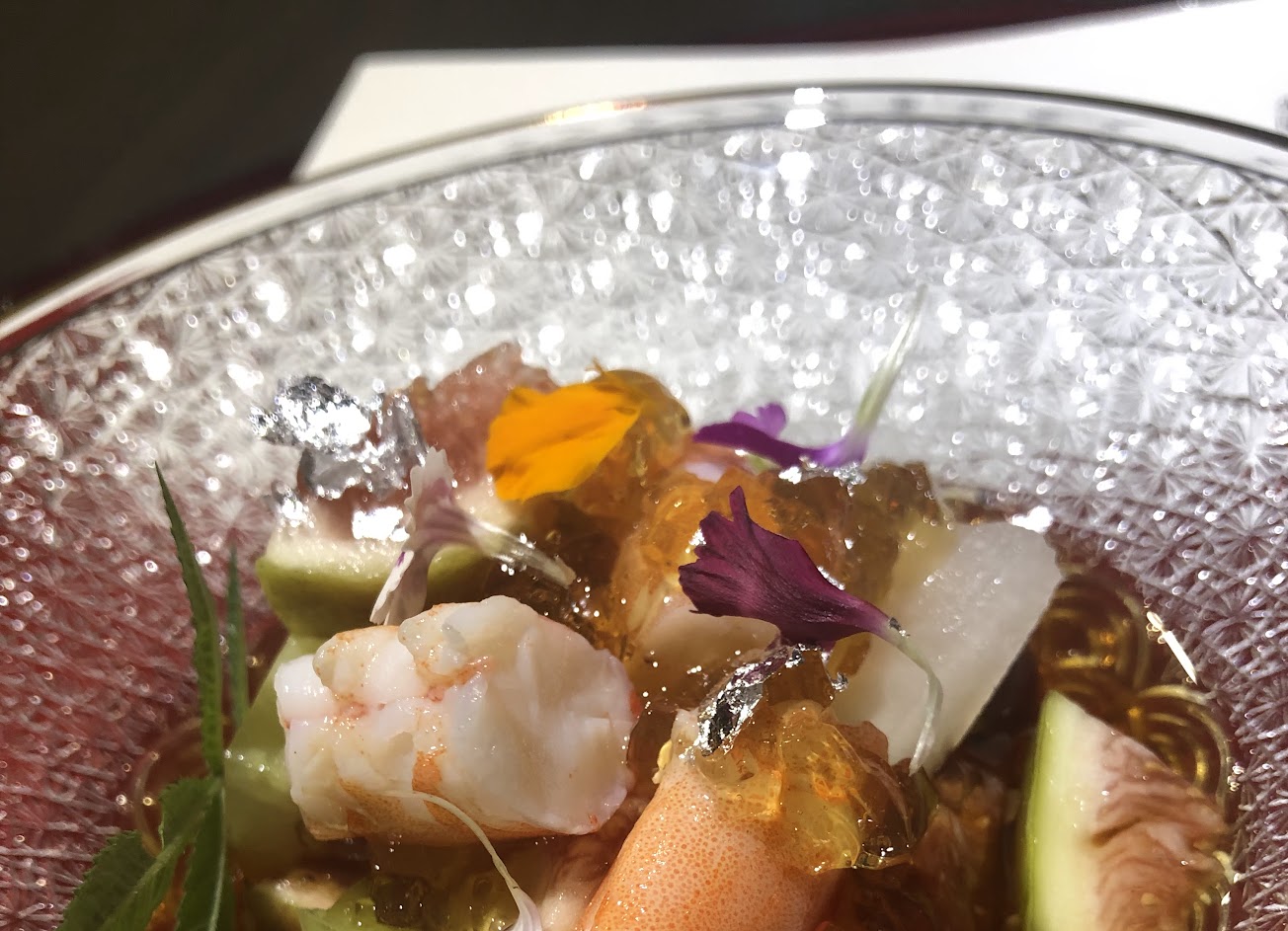 第一道,蝦過熟、冬瓜的口感過硬,醋凍沒給湯匙全部喇進去你為什麼不直接做成醬汁呢..