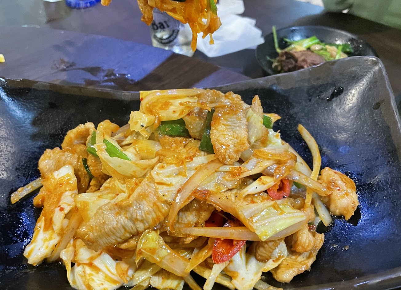 終於等到點的菜完全上完,青菜類份量很多,肉類偏少,吃完要結帳時,回想菜單的價格,也許會落在1000上下,結果那餐吃了1900..還好剛領薪水,不然要留在那洗碗了。
