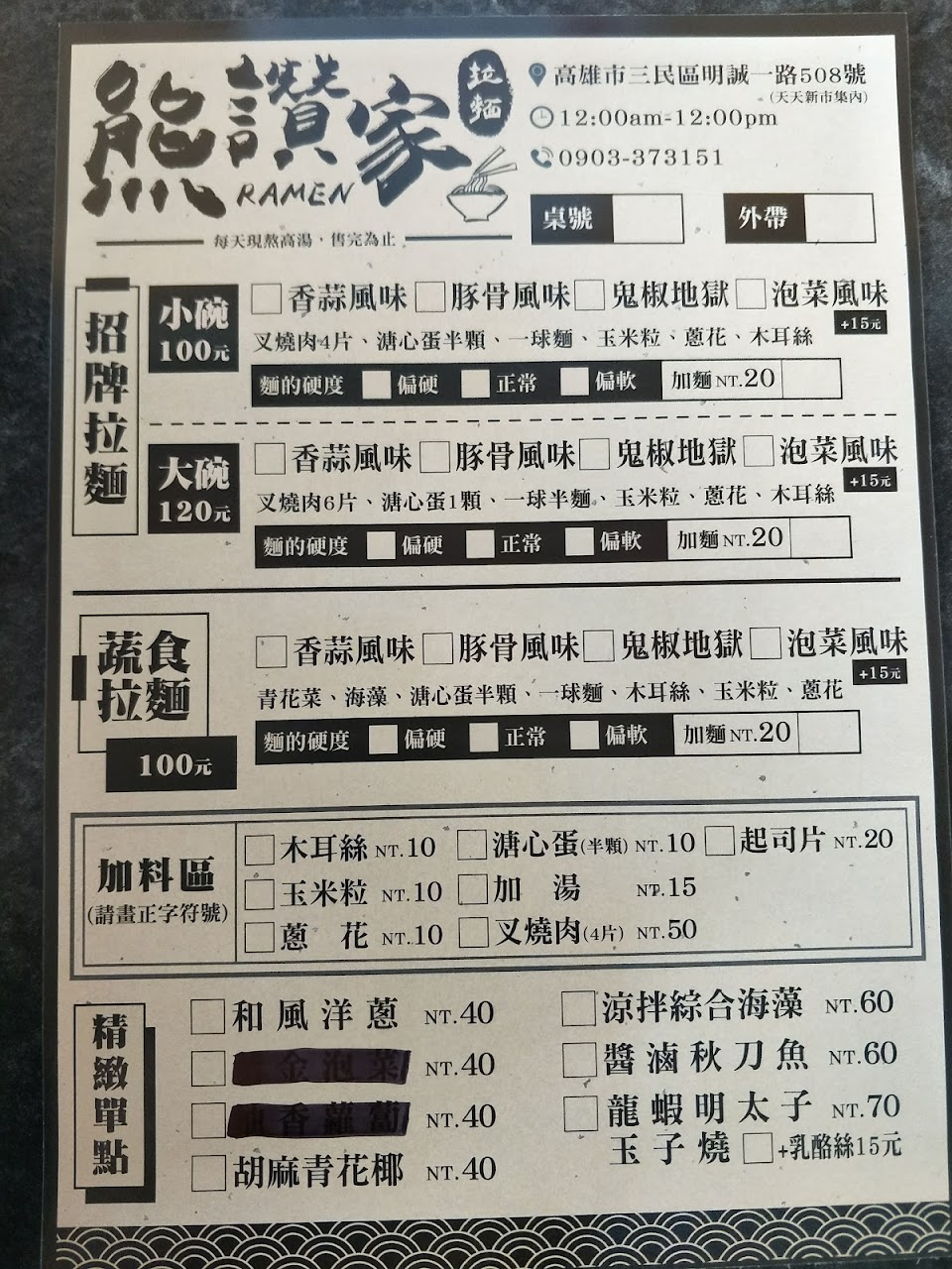 2024最新在地推薦餐廳的菜單_熊讚家日式拉麵(創始店)的菜單、圖片